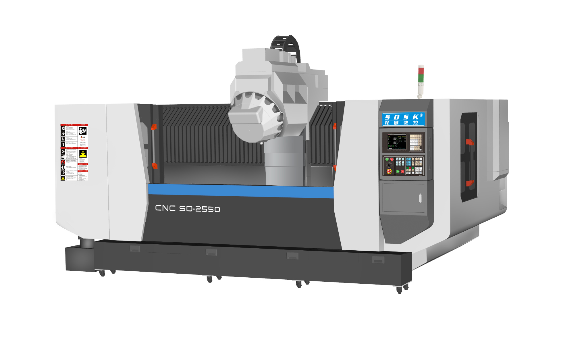 SD2550機(jī)型是專門為客戶量身定做的大型鋁型材鉆攻加工中心; 運(yùn)動(dòng)方式為Y軸工作臺(tái)前后移動(dòng),X軸機(jī)頭左右移動(dòng),Z軸主軸上下移動(dòng)。臺(tái)灣圣杰16位夾臂式刀庫(kù),換刀速度為2秒,大大提高生產(chǎn)效率; 采用三菱數(shù)控系統(tǒng);機(jī)身為鑄鐵結(jié)構(gòu);三軸采用臺(tái)灣上銀P級(jí)直線導(dǎo)軌,研磨級(jí)滾珠絲桿,德國(guó)聯(lián)軸器,三菱伺服電機(jī),先進(jìn)的主軸制冷系統(tǒng),自動(dòng)潤(rùn)滑系統(tǒng),冷卻液循環(huán)噴水系統(tǒng),保證了更高的加工精度、速度與穩(wěn)定性;;特別適用于各類鋼、銅、鋁、壓克力、塑料等零件的精密雕銑、鉆孔、攻牙加工。